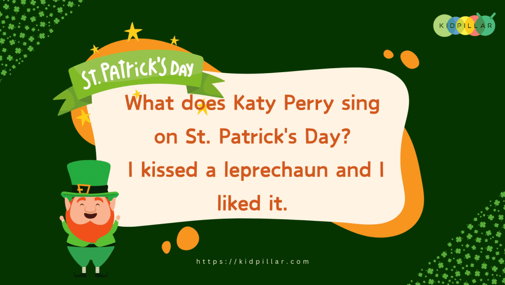 58. What does Katy Perry sing on St. Patrick’s Day? I kissed a leprechaun and I liked it.