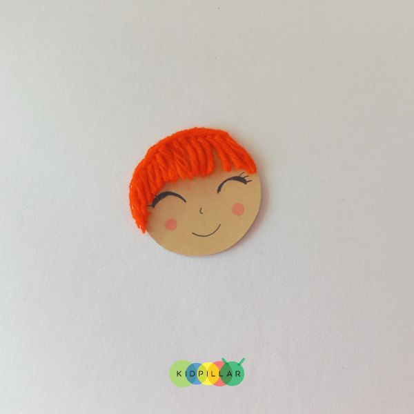 - Paste the yarn on the mermaid craft’s face to cover your mermaid’s forehead