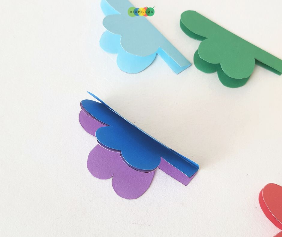 Step 7: Similarly, glue together the rest of the coloured shamrocks one by one, making sure to follow the rainbow color sequence.