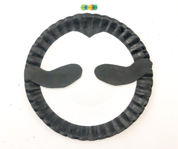 1. Paint the paper plate with black acrylic colour paint as shown and leave it to dry.