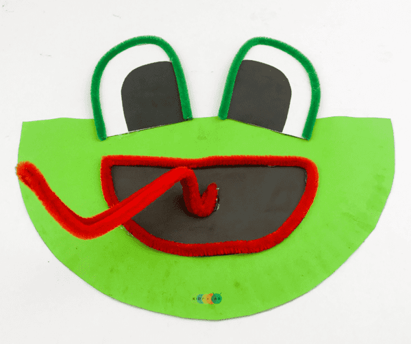 5. Glue the mouth of the frog’s body and use a red pipe-cleaner to outline the mouth of the frog.