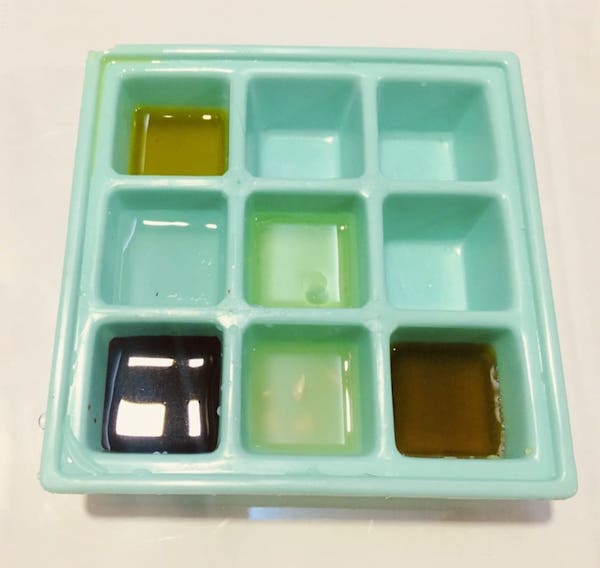 Step 1: Add 1tsp baking soda in ice-cube tray slots.