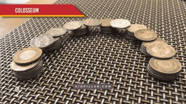 How about building the Roman Colosseum with coins? This massive amphitheater, built of stone, was commissioned to play games. As a part of our structure building activity for school age kids, we decided to make this iconic Roman structure using coins.